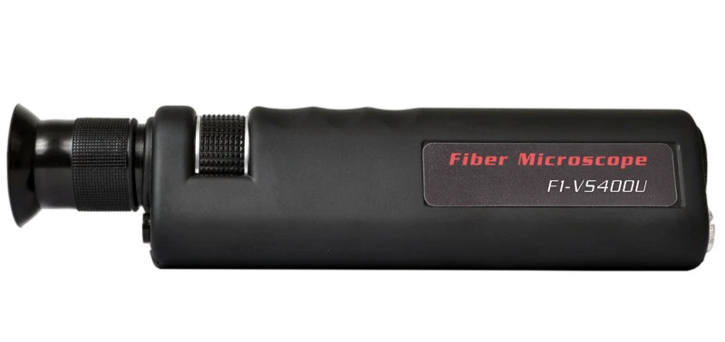 The 400x Handheld Microscope utilizes a white LED for coaxial illumination. Light is introduced into the optical path (axis) so that it comes out the tip of the objective lens and strikes the ferrule perpendicular to the endface.