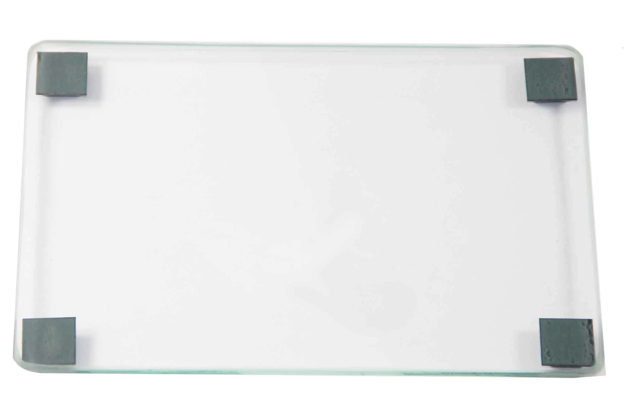 This glass polishing plate is made of safety glass and mounted on four rubber feet for support.