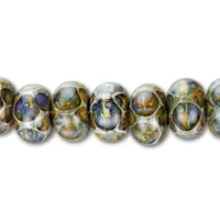 Liven up your style with these Grace Lampwork beads. These beads feature a classic roundel shape that will work in a variety of styles. Try them as spacers in necklaces and bracelets or make them the focal of an earring design. These beads feature an amazing dichroic display of purple and silver color, with a subtle fiery gleam. These beads are available by the strand, giving you ten beautiful beads to work with.This item is handmade, so appearances may vary. Diameter 9-10mm, Length 5.5-6mm