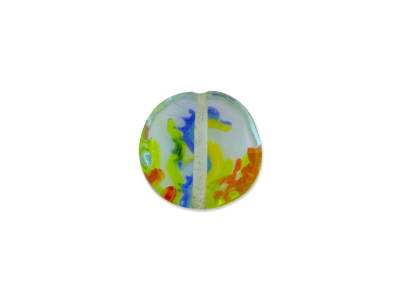 Bring the beauty of the sea to your designs with this Grace Lampwork bead. This bead is circular in shape and features a domed dimension on the front that allows the design to stand out even more. The front is decorated with a raised design of a blue and yellow seahorse among green seaweed and orange coral. The back is flat and smooth so it will rest comfortably when worn. You can use this bead as a focal in bead embroidery or string it onto a head pin for a quick pendant. This item is handmade, so appearances may vary Dimensions: 25mm, Hole Size: 2.5mm