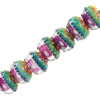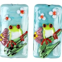 Display kitty cuteness in your style with this Grace Lampwork bead. This bead features a coin or lentil shape. The front is decorated with a raised design of a black cat silhouette with a red heart on a creamy white background. It’s perfect for any cat lover. The front is slightly domed, so it will stand out in designs. The back of the bead is flat and plain. String this bead onto a head pin for a quick pendant or try it at the center of bead embroidery. This item is handmade, so appearances may vary.