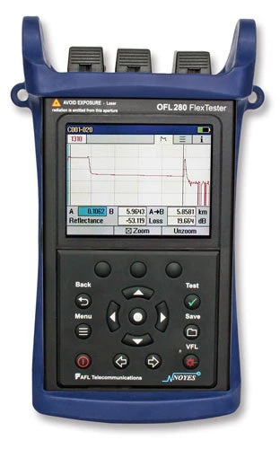 NOYES OFL280 FlexTester offers an unmatched combination of fiber test functions, ease-of-use, portability, and value. All OFL280 FlexTester models include:
