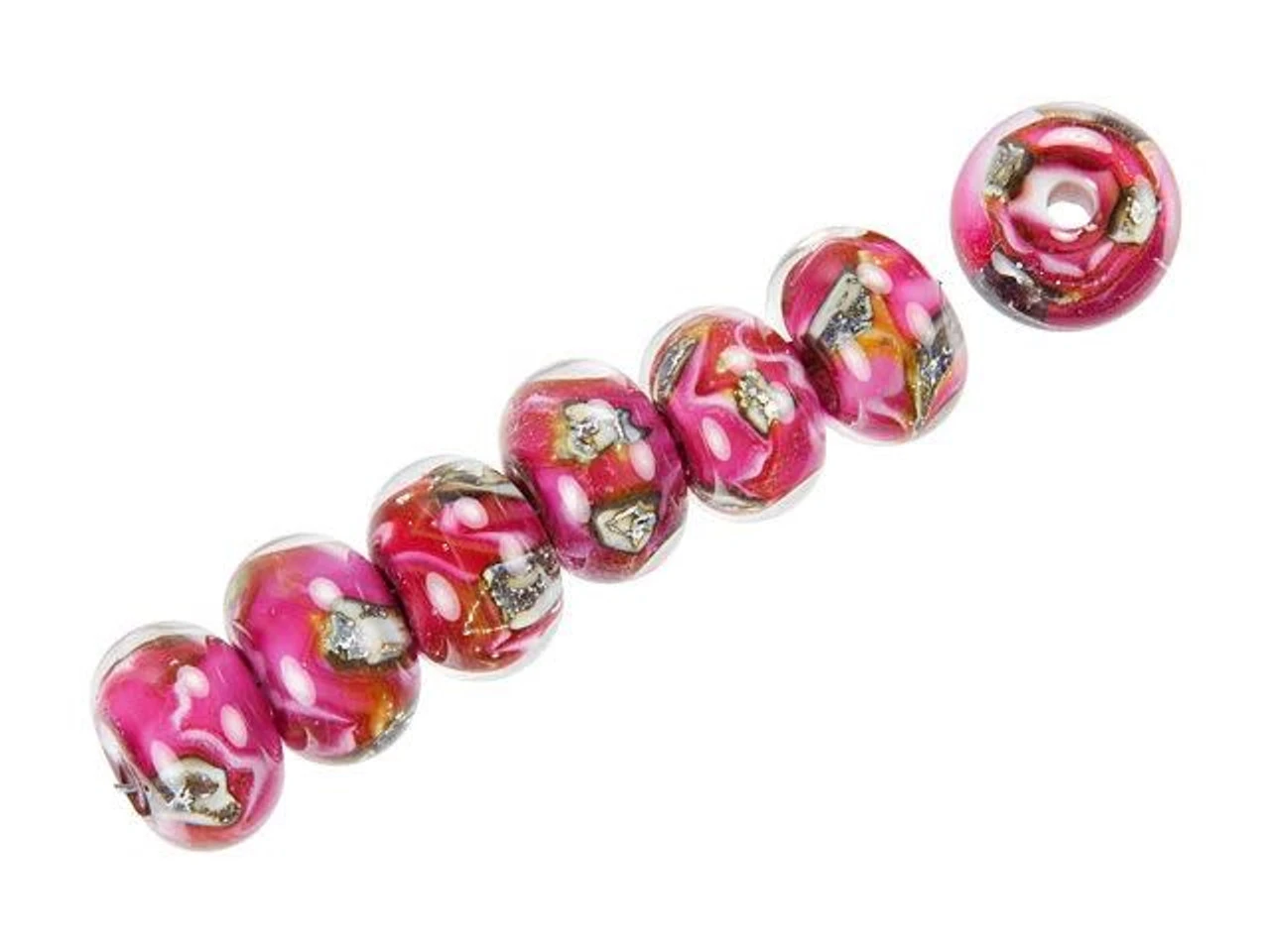 Sweet style fills these Grace Lampwork beads. These glass lampwork beads feature a classic roundel shape. Each bead features swirls of pink and white color, with flecks of silver. You can use these beads in long necklace strands, chunky bracelet styles, and even in earrings. They would look great with shining silver accents.This item is handmade, so appearances may vary.