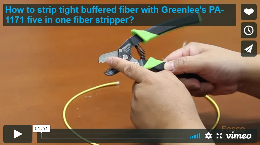- Strips outer jacket from 2.0-2.4mm fiber, 2.8-3.0mm fiber and 2.0-3.0mm loose tube buffer tubes.