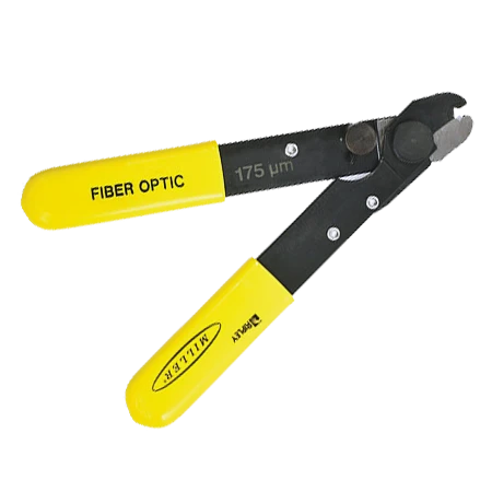 This buffer stripper features a precision diameter hole and V-opening in the blade, which provide clean and consistent stripping of buffer coating. The durable stripping tool prevents any scratching or nicking of optical fiber. All cutting surfaces are hardened, tempered and ground.