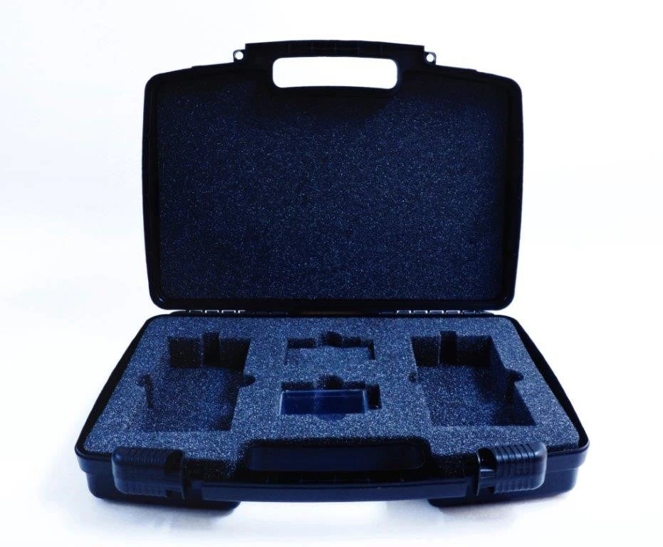 Rugged Test Equipment Carry Case, Blue with Foam 14″x10″x4” deep, with Storage Box. This case is an excellent choice for storing and transporting handheld test equipment.