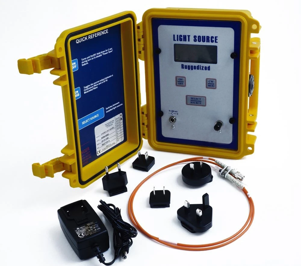 TheĀ Fosco Ruggedized Fiber Optic Power Meter/Loss Test Set is ideal for harsh work conditions where traditional hand held units are not appropriate. These units are available with single or dual wavelength light sources and are housed in a weather-resistant, high-impact case. YourĀ Fosco Fiber Optic Power Meter is provided with a 2.5mm and 1.25mm Universal Adapters, Manual and Power Supply/Charger. When ordering, please indicate any other type of power meter adapter that you may require. TheĀ Fosco Ruggedized Light Source comes standard with a ST Adapter for Multimode and FC Adapter for Singlemode units.